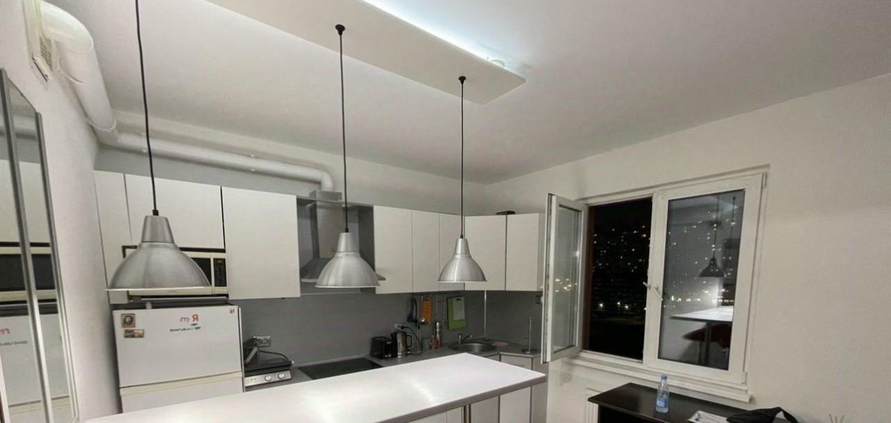 Свежий ремонт на кухне, Евро кровать (матрас двух сторонний с разной жесткостью) + диван раскладывается. Барная стойка. Два рабочих места можно организовать (стол разобран второй, который помещается в комнате).