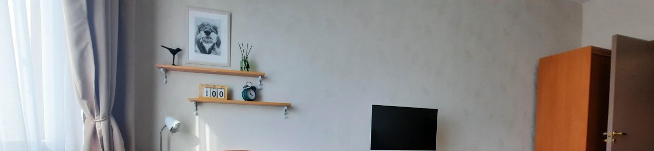 Предлагается в долгосрочную аренду (от 6 месяцев и >) однокомнатная квартира с застекленным балконом (вход из кухни-гостиной). Квартира общей площадью = 41.7 кв.м (с учетом площади балкона = 45.7 кв.м) разумной планировки на 15 этаже, высокие потолки (2,78 м), окна на запад.