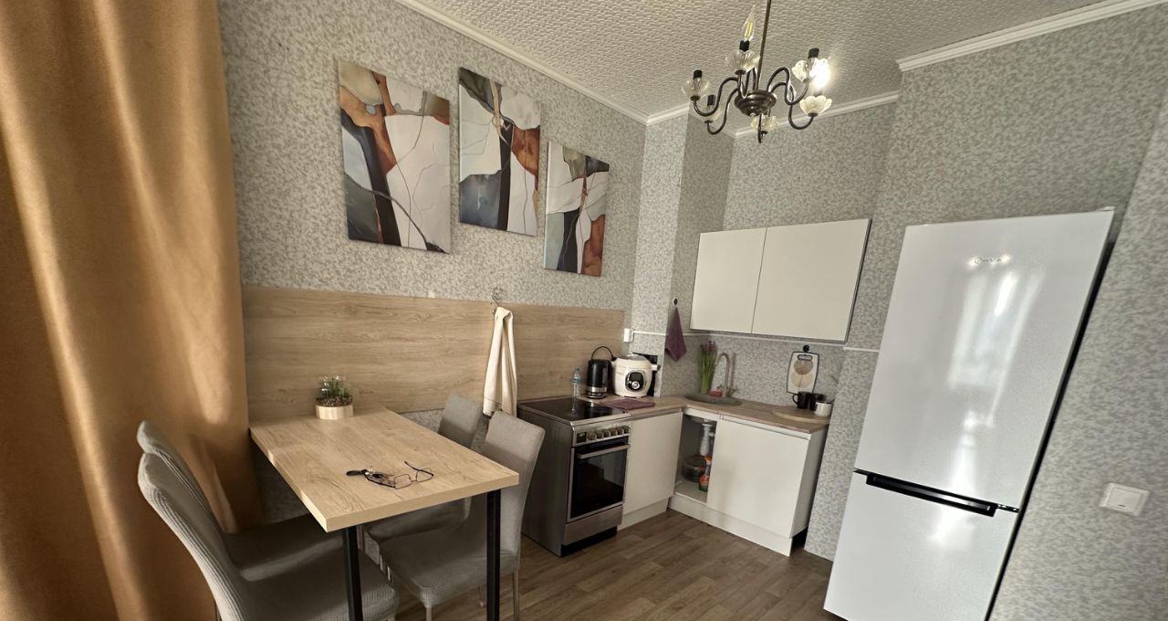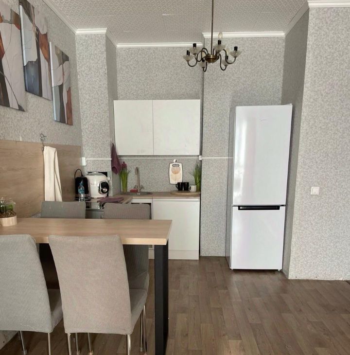 Квартира в хорошем состоянии, с косметическим ремонтом. Есть все необходимое для комфортного проживания: мебель в комнате и на кухне, современная техника — холодильник и стиральная машина. Санузел совмещенный, с душевой кабиной. большой теплый балкон-лоджия, который можно использовать в качестве кабинета или комнаты.