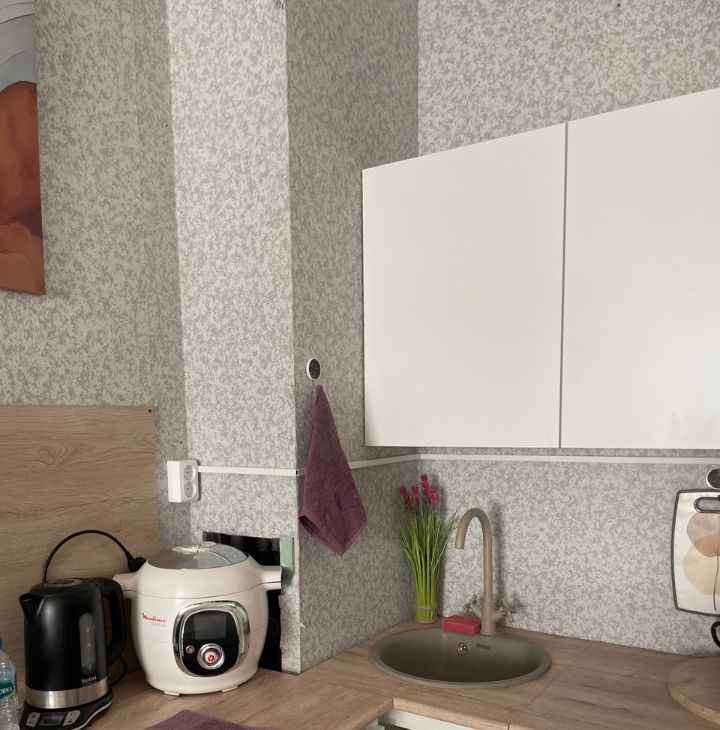 Сдается уютная однокомнатная квартира на 19 этаже современного дома, построенного в 2017 году. Общая площадь квартиры составляет 50 кв. м, жилая площадь — 18 кв. м, просторная кухня-гостиная 27 кв. м. Высота потолков — 2.8 метра. Окна выходят как на улицу так и во двор .