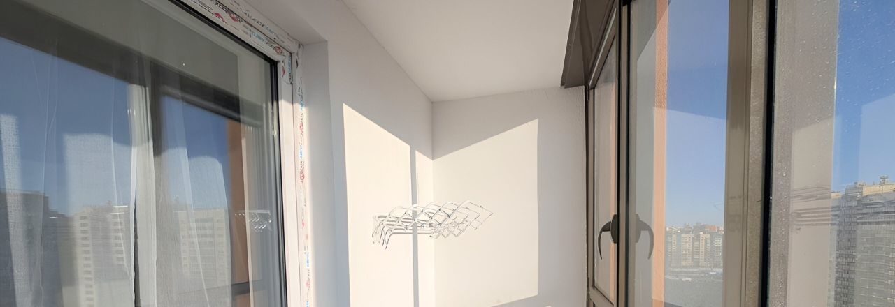 Большая комната плавно перетекает в кухонную зону, но главное украшение квартиры — выход на утепленный балкон. Представьте: мягкий свет, город с высоты 16 этажа и чашка кофе по утрам. Это не просто балкон, это ваша лаунж-зона с видом на Петербург.