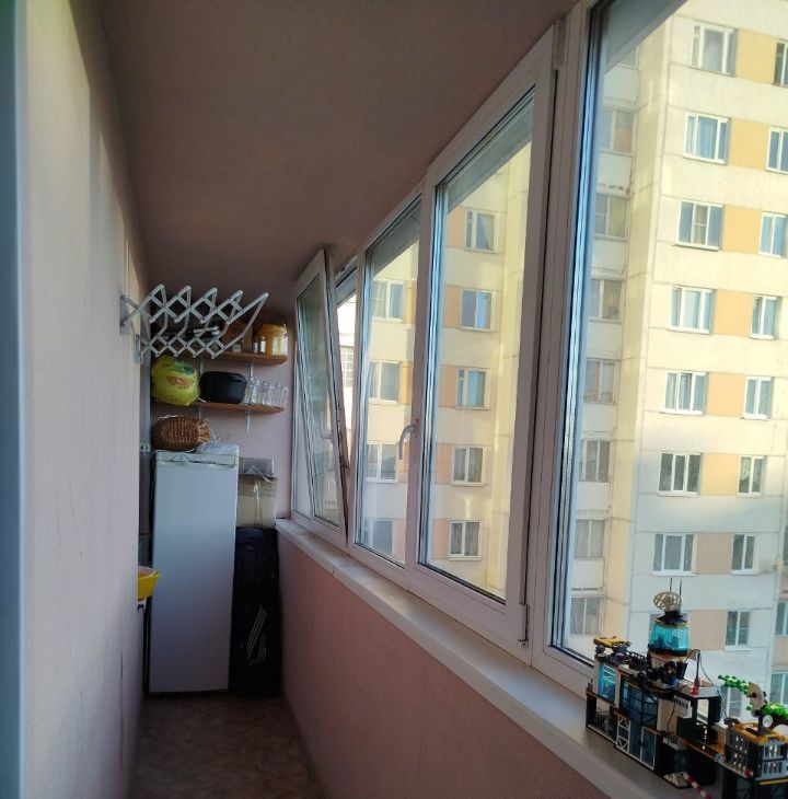 Общая площадь - 38.8 м плюс 6м лоджия (стеклопакеты, 3 раскрывающихся створки)