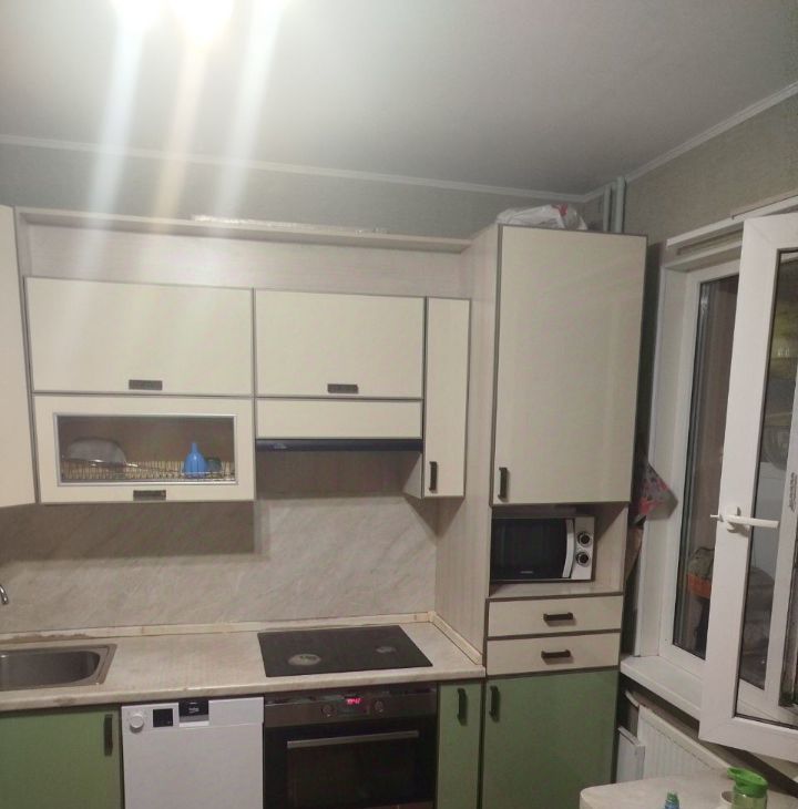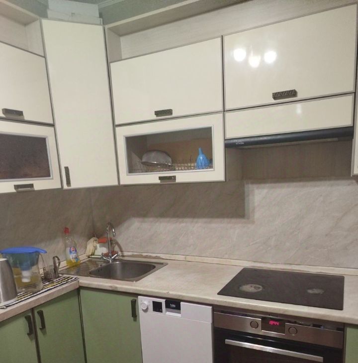 Квартира готова к заселению. В кухне остаётся хороший удобный гарнитур, варочная панель и электрическая духовка, посудомоечная машина.