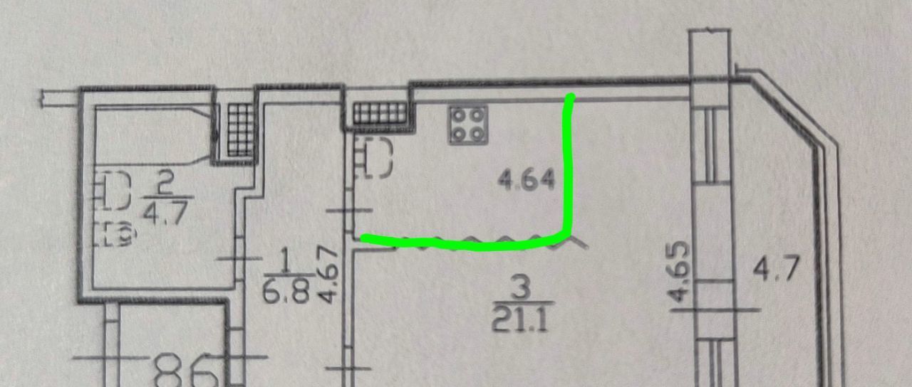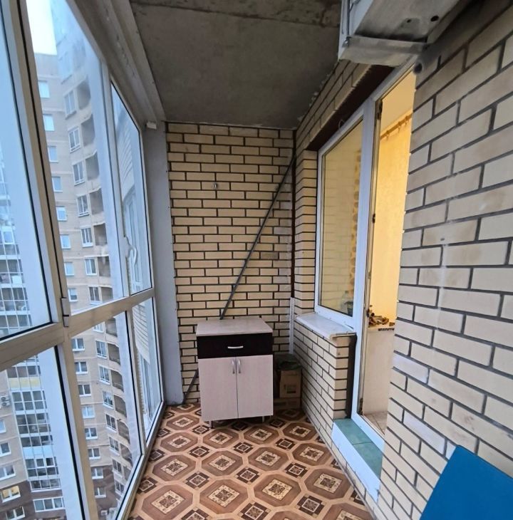 С выделенным местом для спальни или под детское пространство. Кондиционер и бойлер есть. Большой балкон.