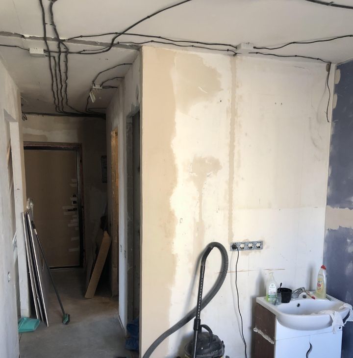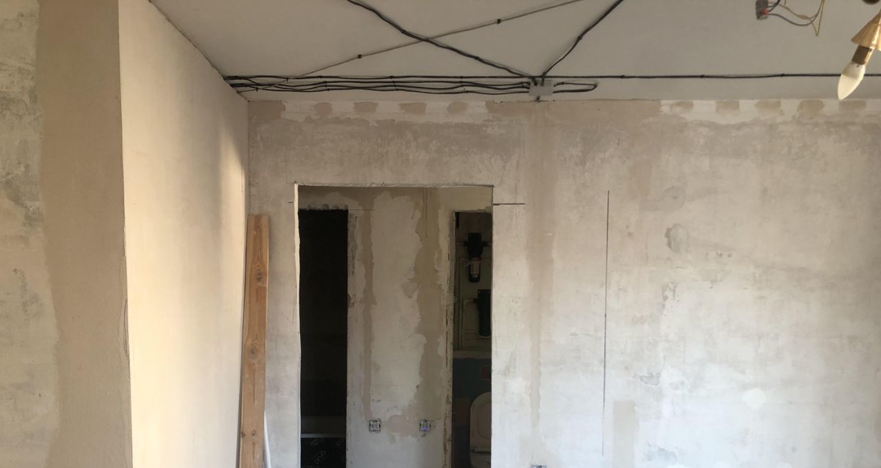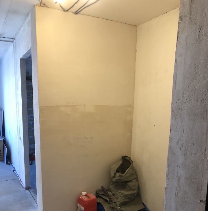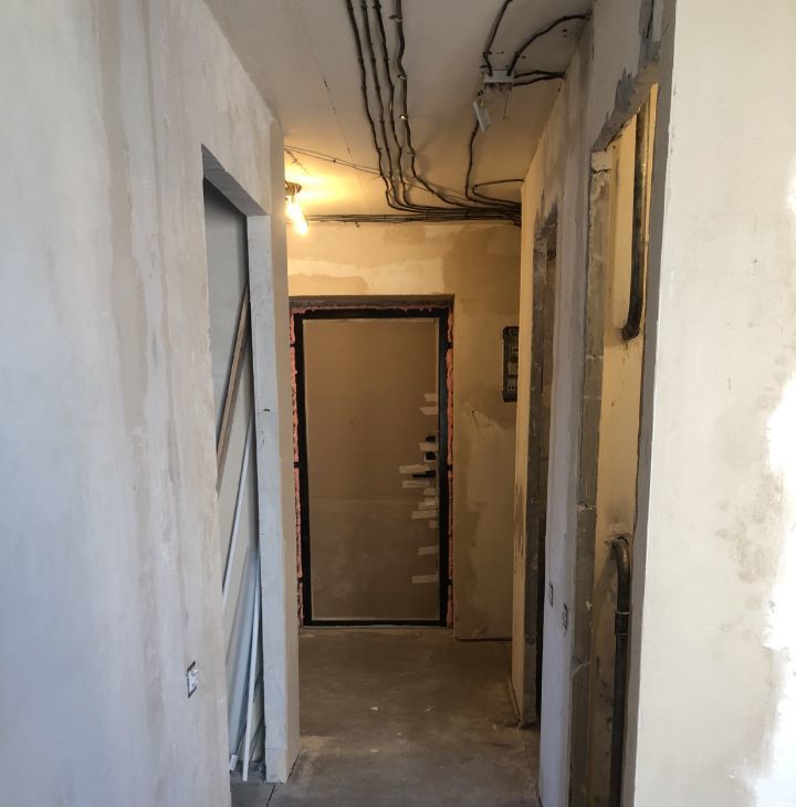 В квартире был перенесен дверной проем в комнате, что даёт возможность в коридоре сделать большой встроенный шкаф.