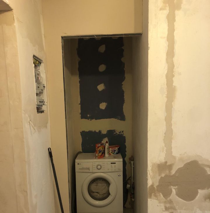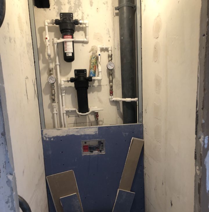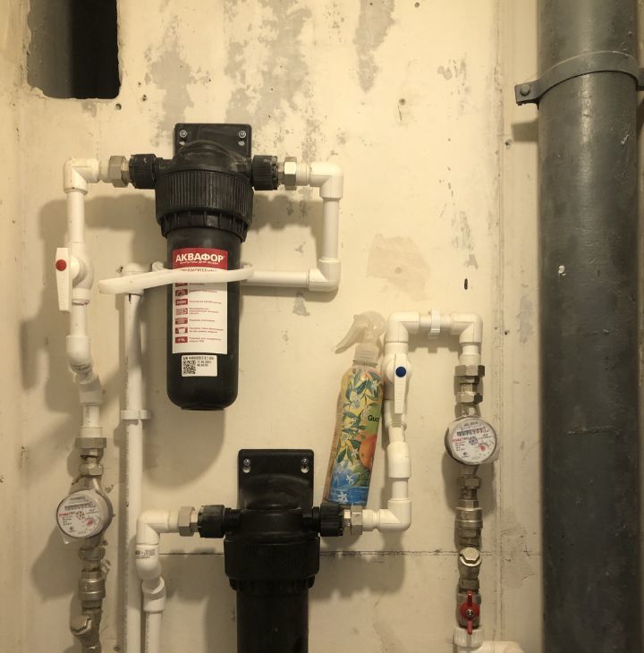 Заменена вся сантехника (Valtex) и установлены магистральные фильтры. В бывшей кладовке места под бойлер и стиральную машину.