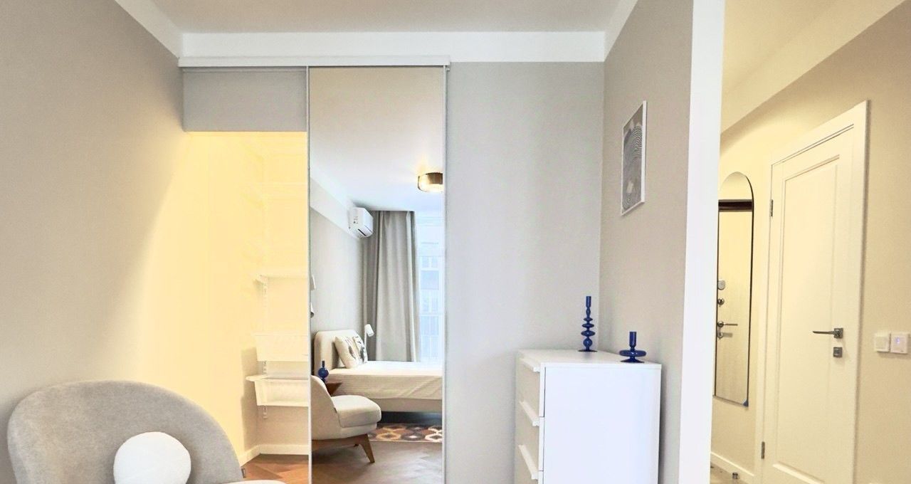 - удобная функциональная планировка, в прихожий установлен вместительный шкаф для одежды, в комнате - отдельная гардеробная;