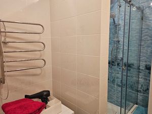 Организована зона хранения вещей (большая гардеробная). В квартире имеется пылесос, фен,гладильная доска,утюг,складной рабочий стол.