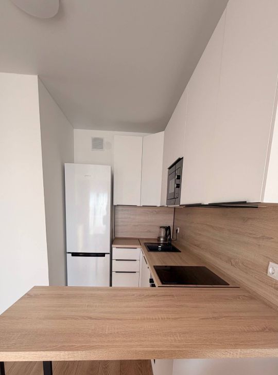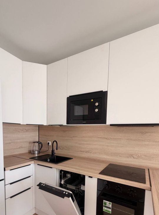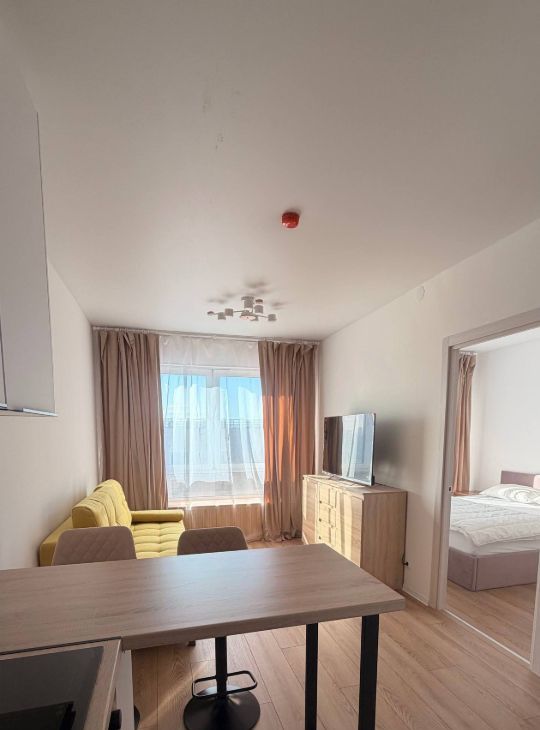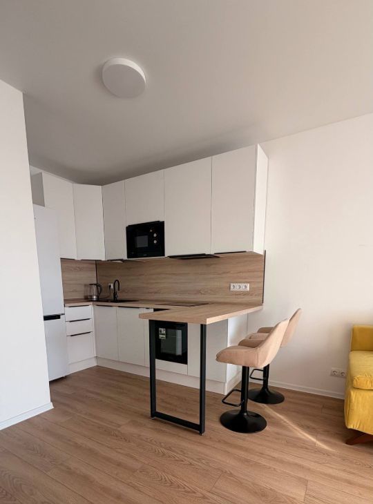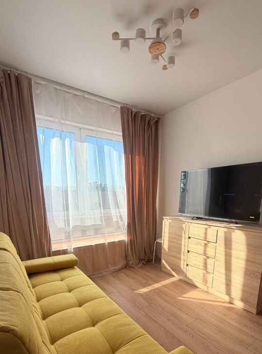 Предлагается в долгосрочную аренду современную 1-комнатную квартиру общей площадью 32,1 кв.м. Объект сдаётся впервые.