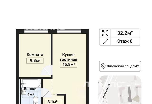 1-к кв. Санкт-Петербург Лиговский просп., 242 (32.2 м²)