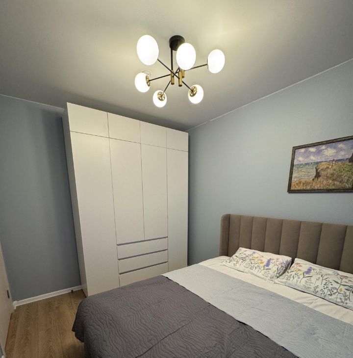 Также будет дополнительно установлен полотенцесушитель в ванную, настенные бра и прикроватная тумба в спальню