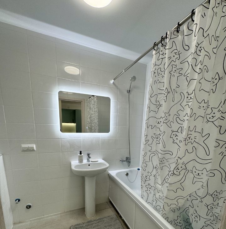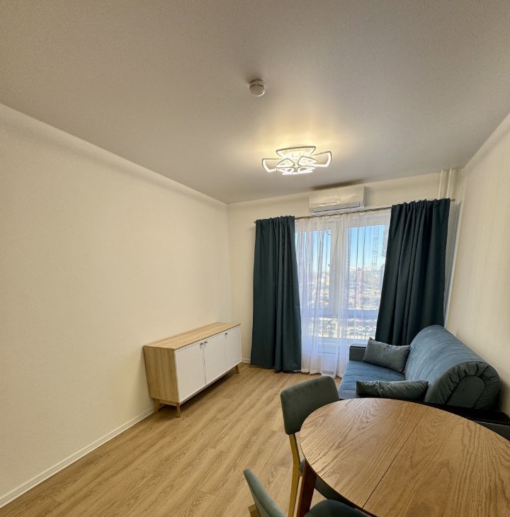 Просторная жилая площадь 30 м², евро ремонт. В квартире есть всё необходимое. Современная кухня, оборудована качественной техникой: встроенный холодильник 2 м, индукционная варочная поверхность, духовой шкаф, кухонный измельчитель для раковины, система фильтрации воды, большая посудомоечная машина, 2 кондиционера. Вся техника и мебель абсолютно новые. Санузел совмещённый, выполнен в светлых тонах. В комнате удобная кровать с подъемным механизмом, ортопедический матрас и вместительный шкаф. В кухне-гостиной раскладной диван для 2х человек и раздвижной стол.