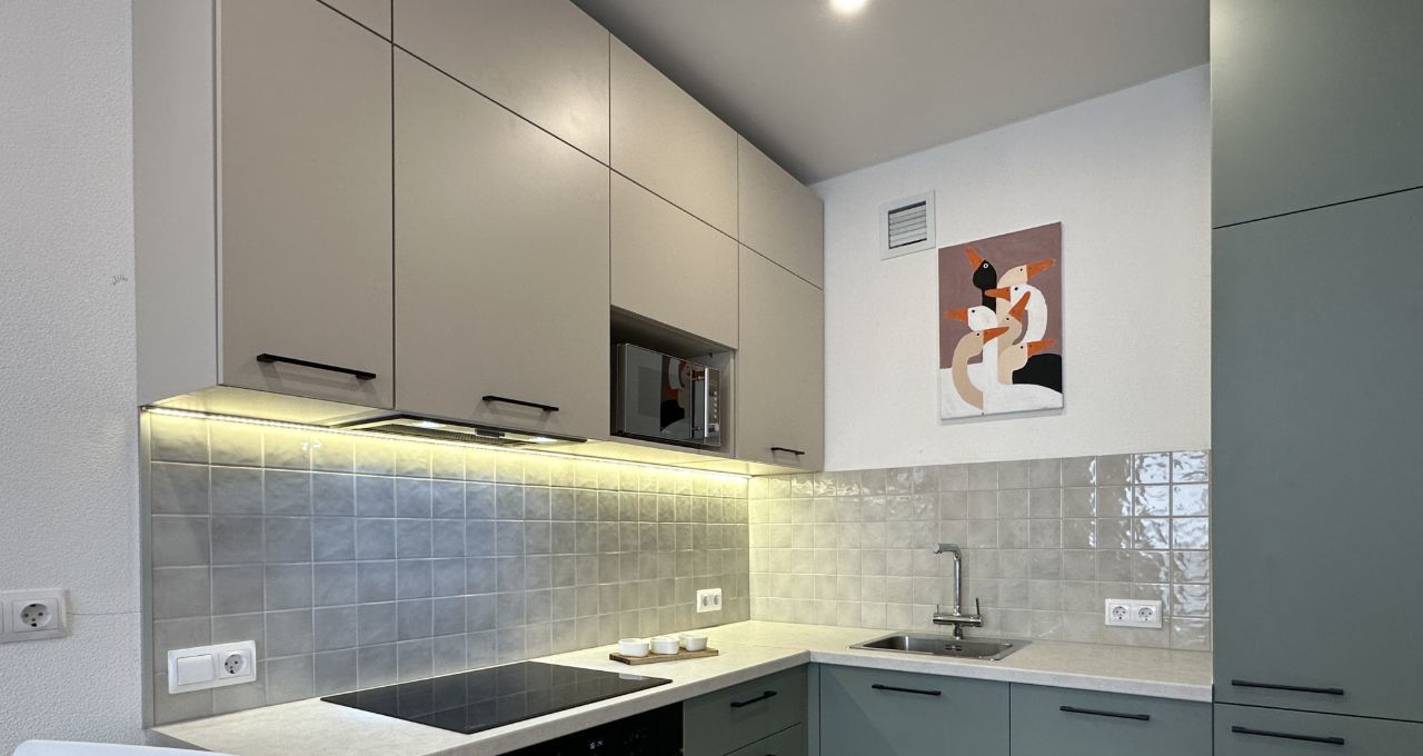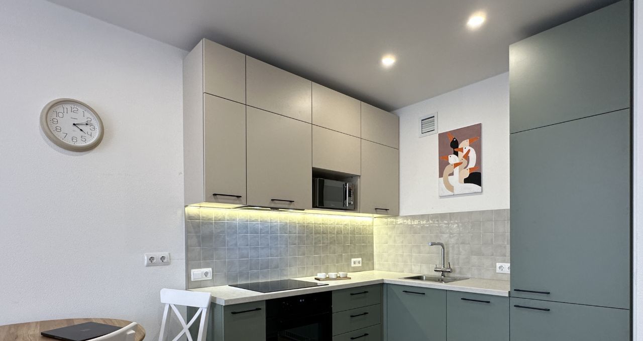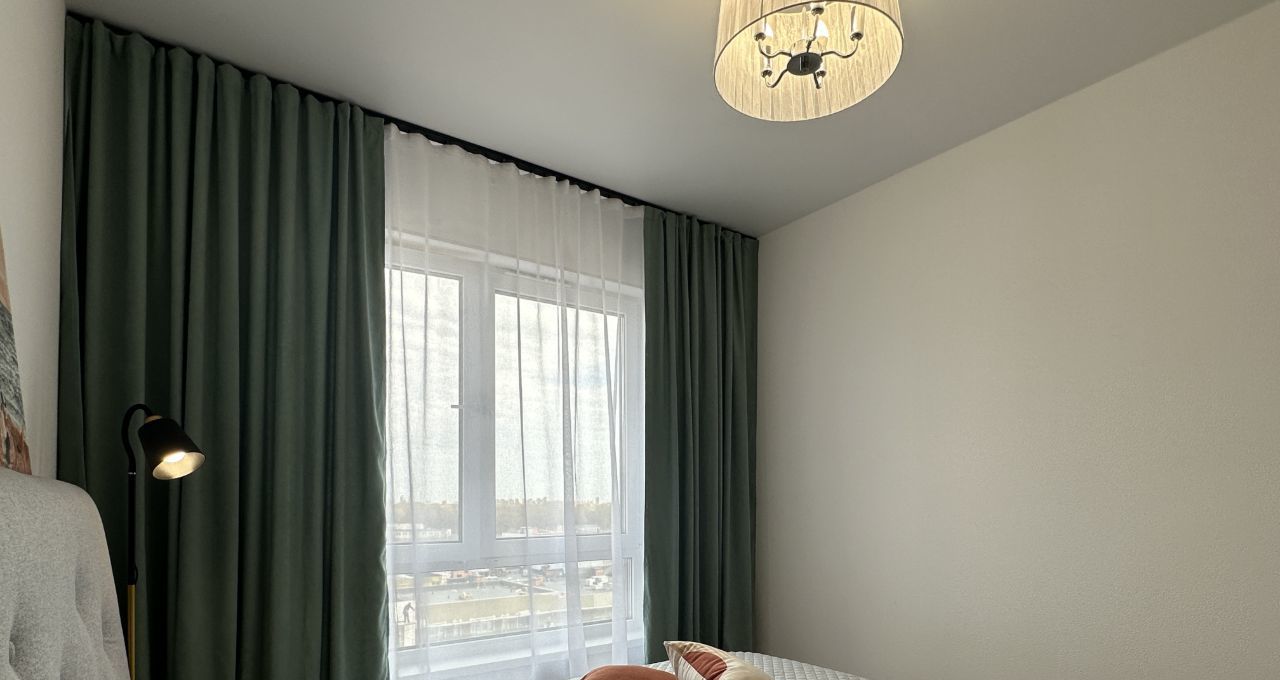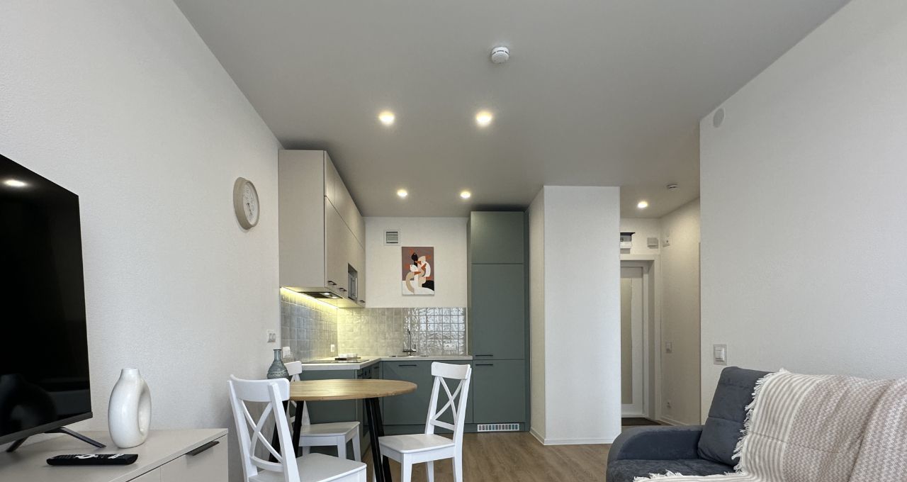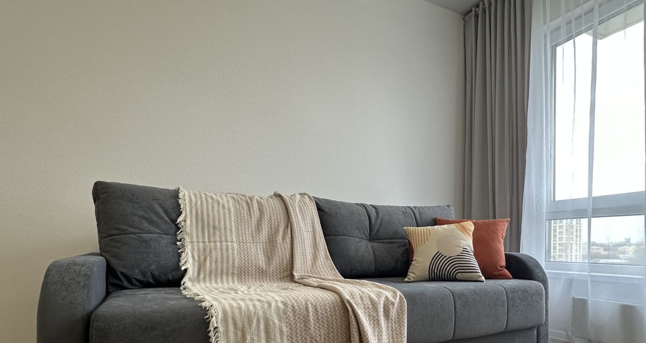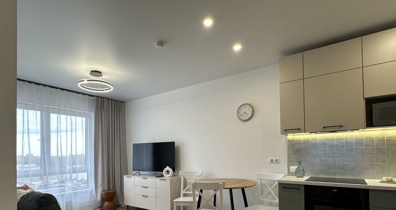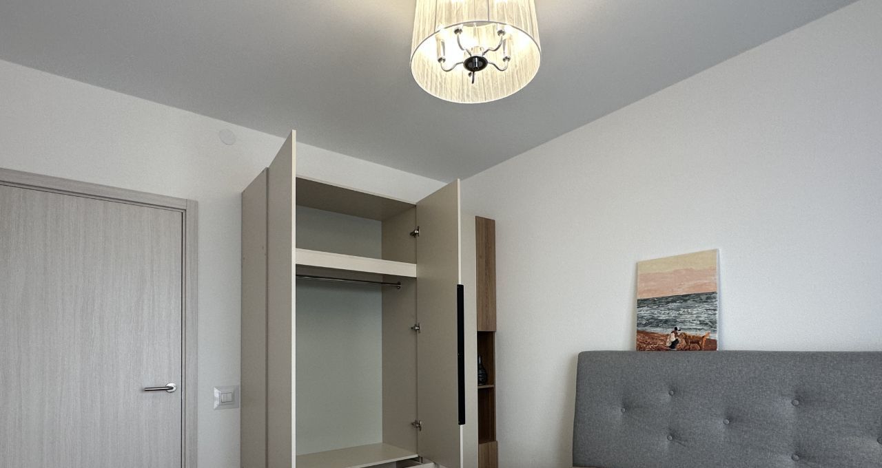 Новая квартира с продуманной планировкой: кухнягостиная и уютная спальня с большими окнами, удобная ванная комната — идеальное решение для комфортного долгосрочного проживания.