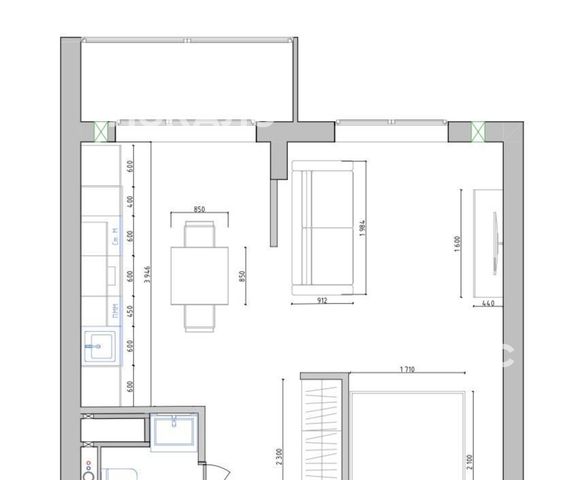 Есть зона сна с большой и удобной кроватью 160х200 см, прикроватной тумбой и мягким светом для чтения. Зона гостиной с широким диваном и тумбой под ТВ. Большая полностью оборудованная кухня с посудомоечной и стиральной машиной, вместительным холодильником, варочной панелью, специальным шкафом для хозяйственного хранения - всё для жизни без бытовых забот.