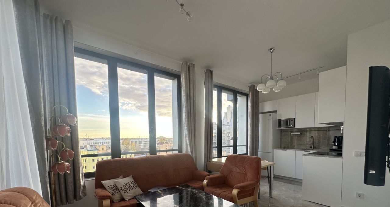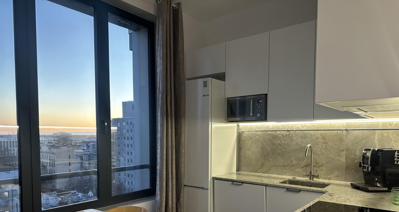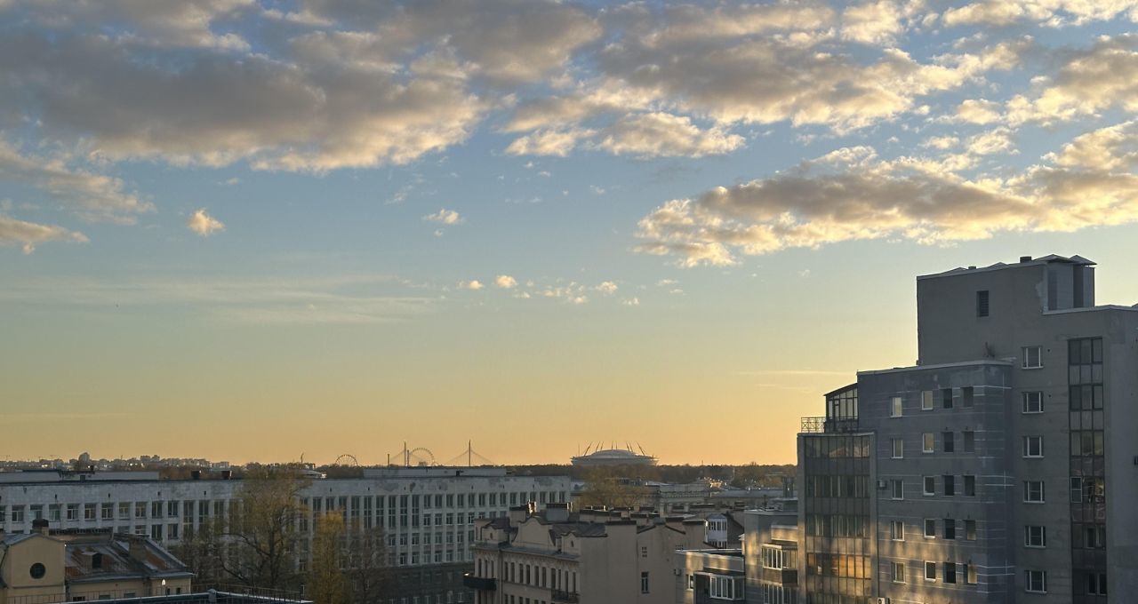 Изумительные рассветы и очаровательные закаты вечером - то, что нужно истинным ценителям красоты. Виды из панорамных окон на Газпром Арену из гостиной и телебашню из спальной комнаты, как в лучших домах Северной Венеции