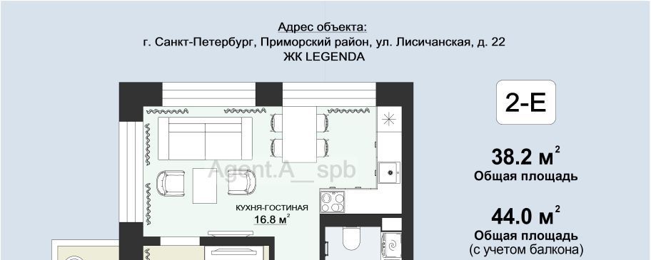 1-к кв. Санкт-Петербург Лисичанская ул., 22 (44.0 м²)