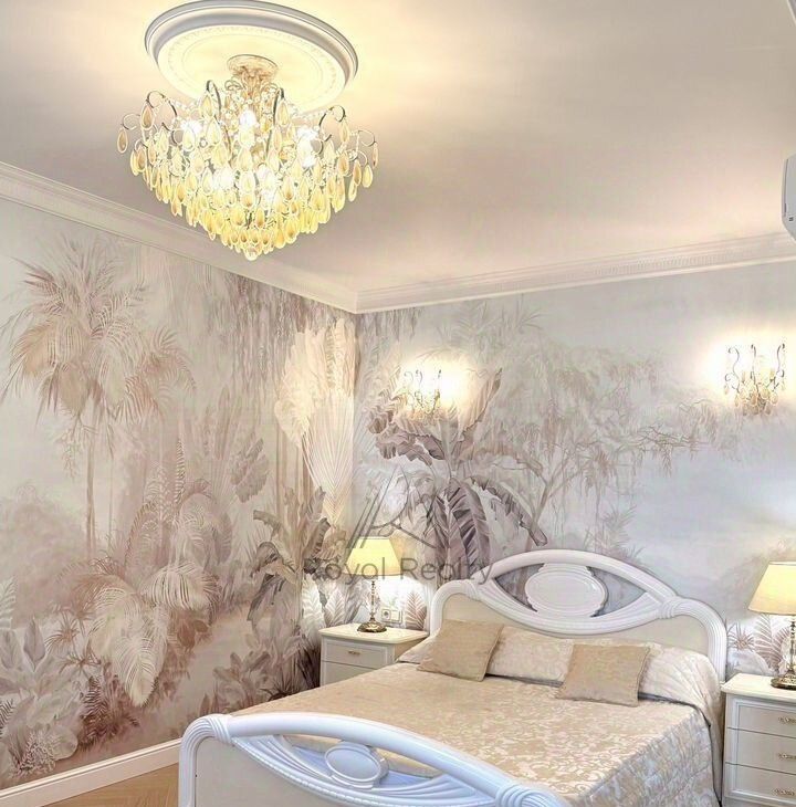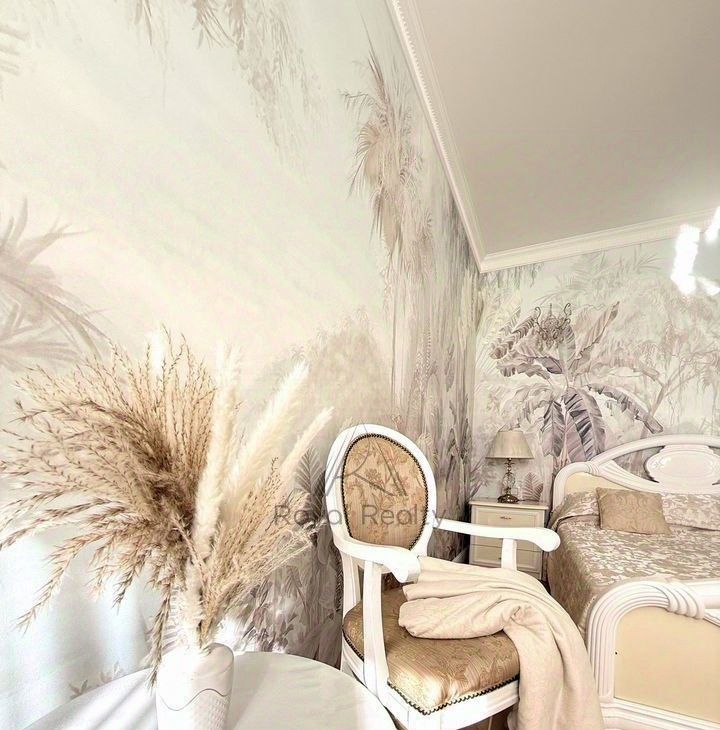 Стены спальни декорированы необыкновенной фреской. Вы попадаете на райский остров, пропитанный загадочной нежностью, погружаетесь в мир мечтаний, фантазий и грёз.