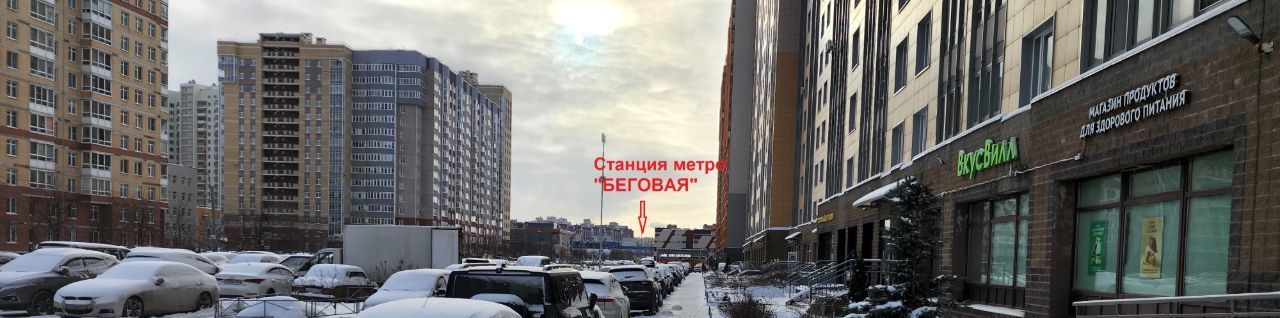 До станции метро "Беговая" 10 - 15 минут пешком. В трёх минутах от дома строится новая станция метро Богатырская