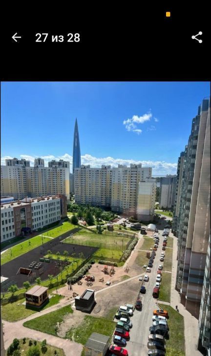 Вид: Окна выходят на юго-запад, на залив и Лахта Центр (особенно красиво вечером).