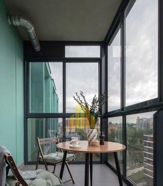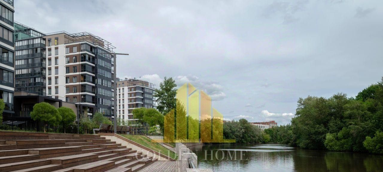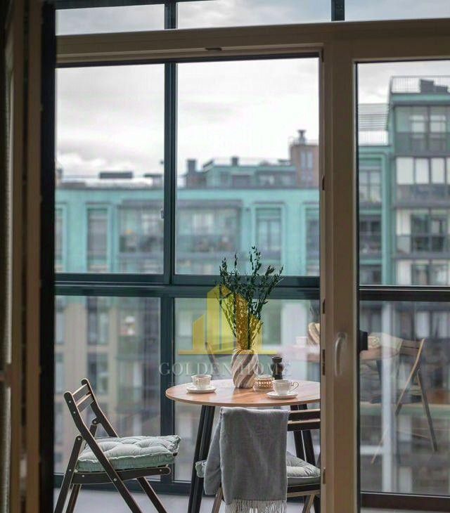 Из гостиной можно выйти на просторный балкон с панорамными окнами, откуда открывается боковой вид на реку. В спальне расположен французский балкон.