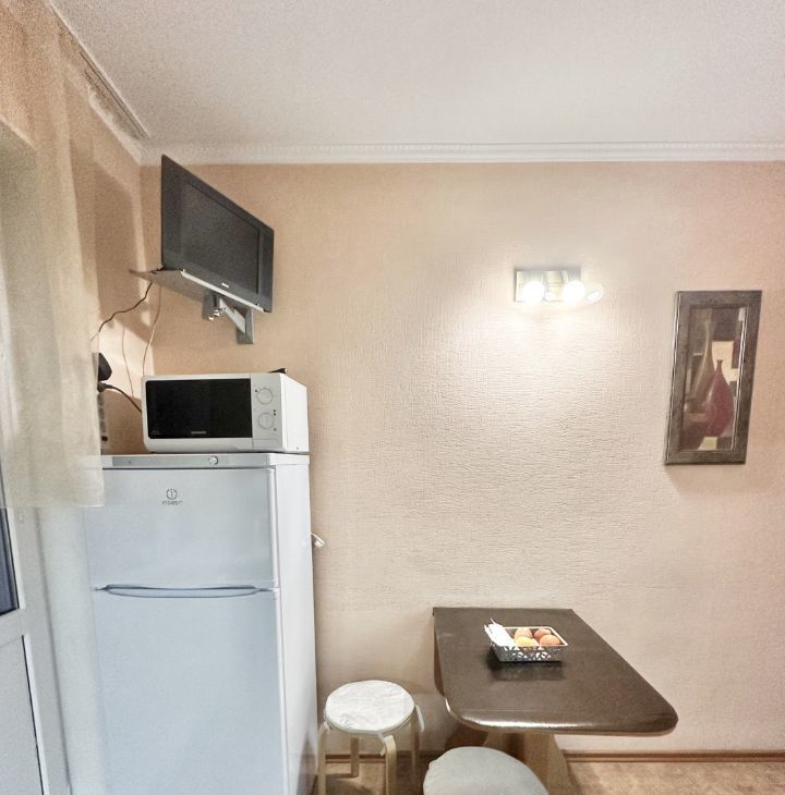 Для комфортного проживания есть двуспальный диван, ортопедическая раскладушка, телевизор, холодильник и микроволновка...