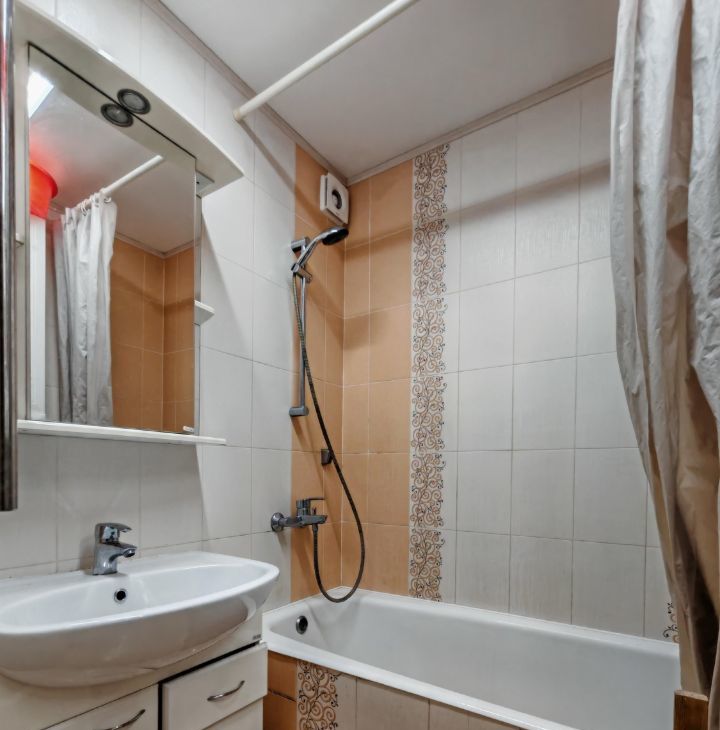 Санузел раздельный. В ванной: сама ванна, умывальник с зеркалом, стиральная машина. Всё аккуратно, ухоженно, сантехника в порядке.