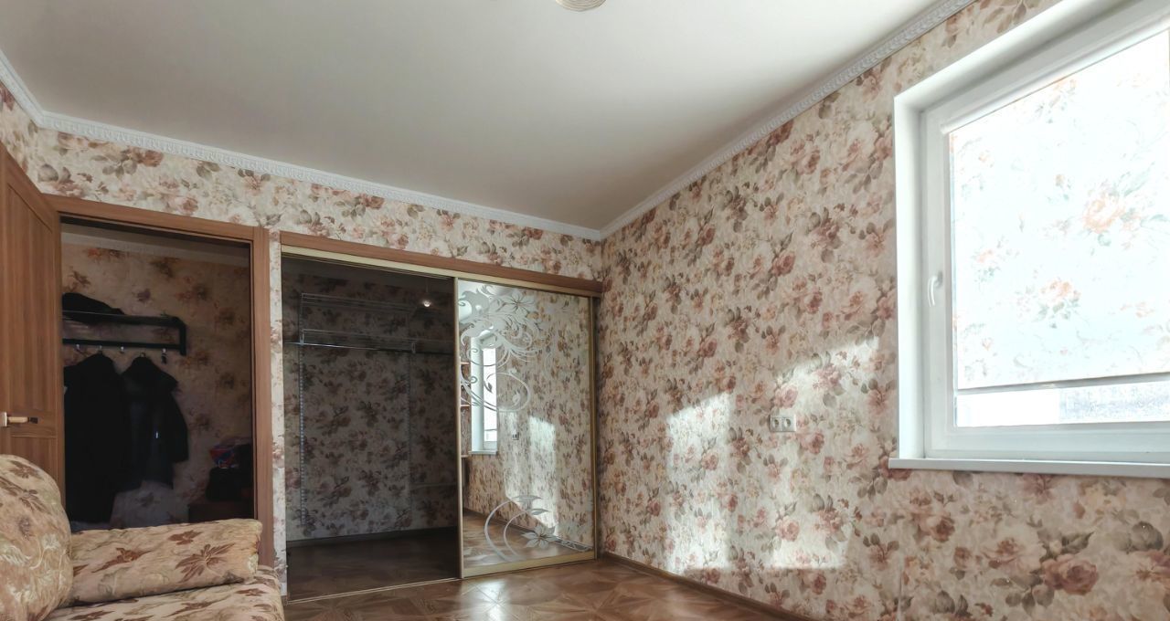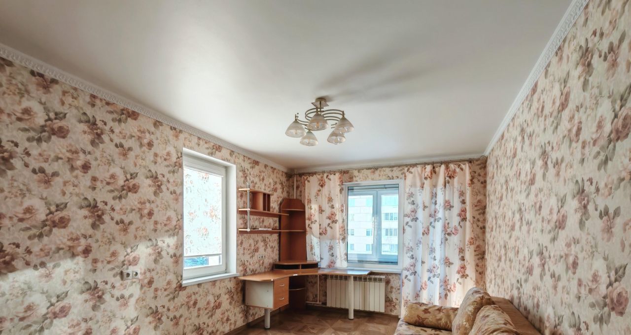 Комната 18,4 м², с двумя окнами. Очень светло и просторно. Отдельный плюс — обустроенная гардеробная, где можно хранить вещи и забыть про громоздкие шкафы. Из мебели в комнате: удобный диван и угловой компьютерный стол. Из комнаты выход на остеклённый балкон.