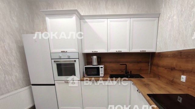 Вся необходимая техника: холодильник, варочная панель, стиральная машина, микроволновка.