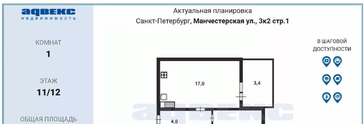 1-к кв. Санкт-Петербург Манчестерская ул., 3к2 (35.0 м²)