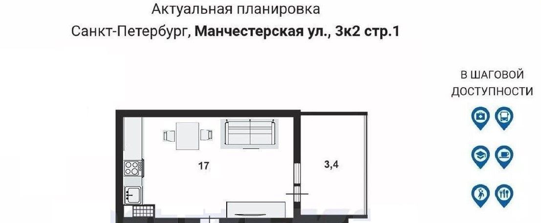 1-к кв. Санкт-Петербург Манчестерская ул., 3к2 (35.0 м²)