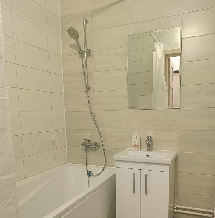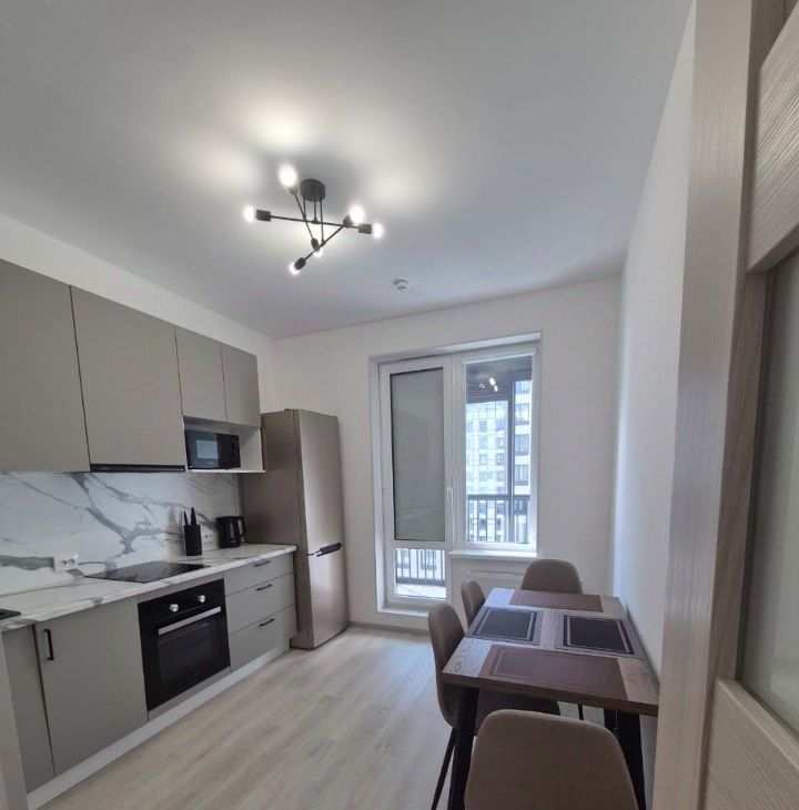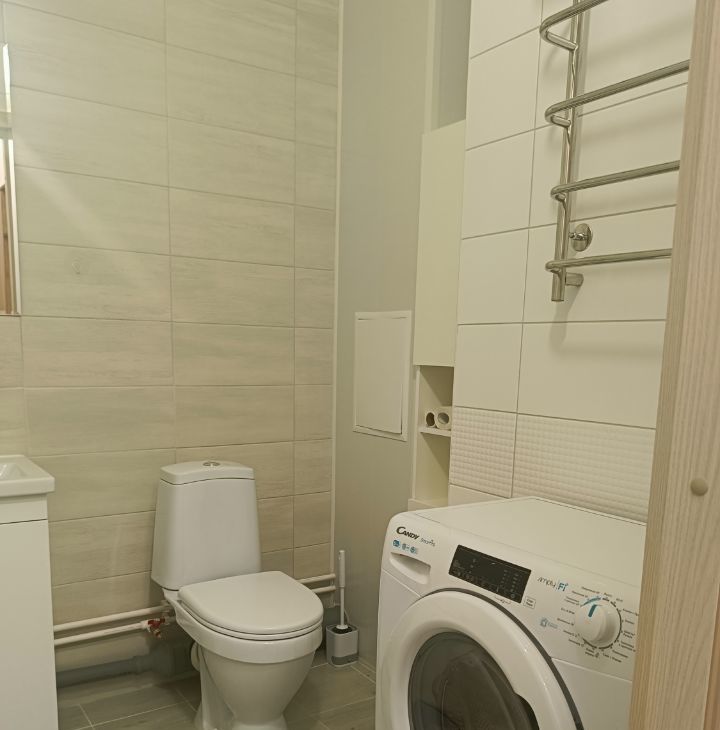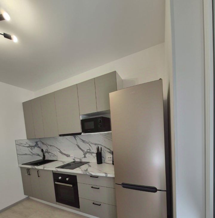 В квартире сделан современный евроремонт. Она полностью меблирована: на кухне и в комнате есть всё необходимое для комфортного проживания. Ванная комната оборудована ванной. Из техники в вашем распоряжении холодильник, стиральная и посудомоечная машины. Для удобства жильцов в доме есть и пассажирский, и грузовой лифты.