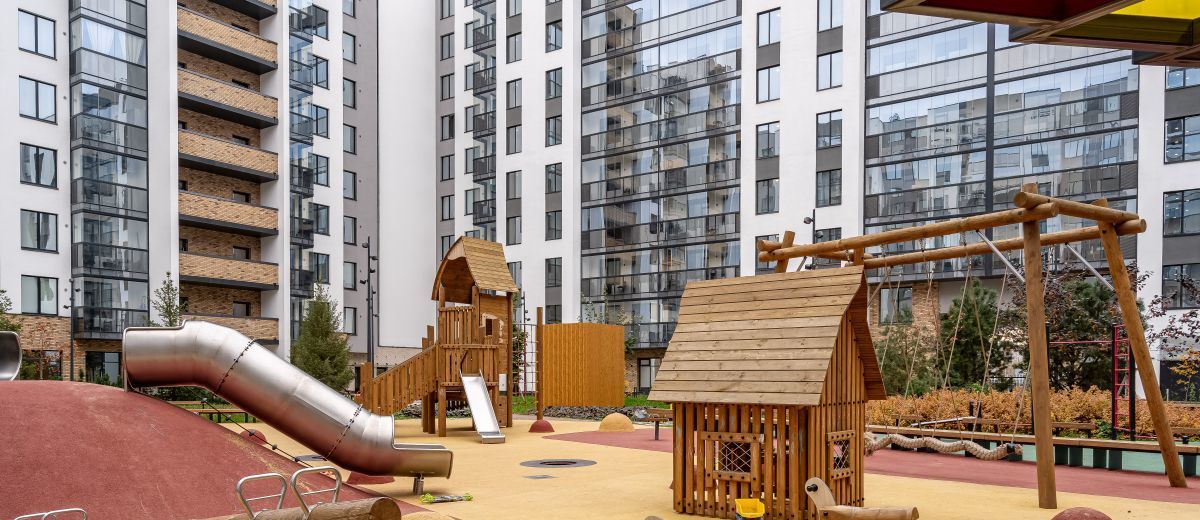 Новый современный жк комфорт-класса с закрытой оборудованной зонами отдыха и детскими площадками территорией.