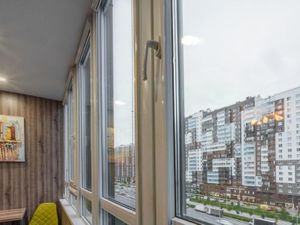 Уютная светлая однокомнатная квартира с видом на красивые цветущие деревья.