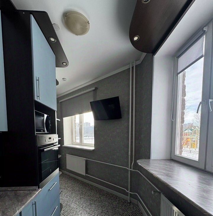 В квартире сделан современный евроремонт. Интерьер обставлен стильной мебелью, а кухня оснащена всей необходимой техникой: холодильник, посудомоечная машина, стиральная машина и телевизор. Высота потолков — 2.78 метра, что добавляет пространству больше воздуха и света.