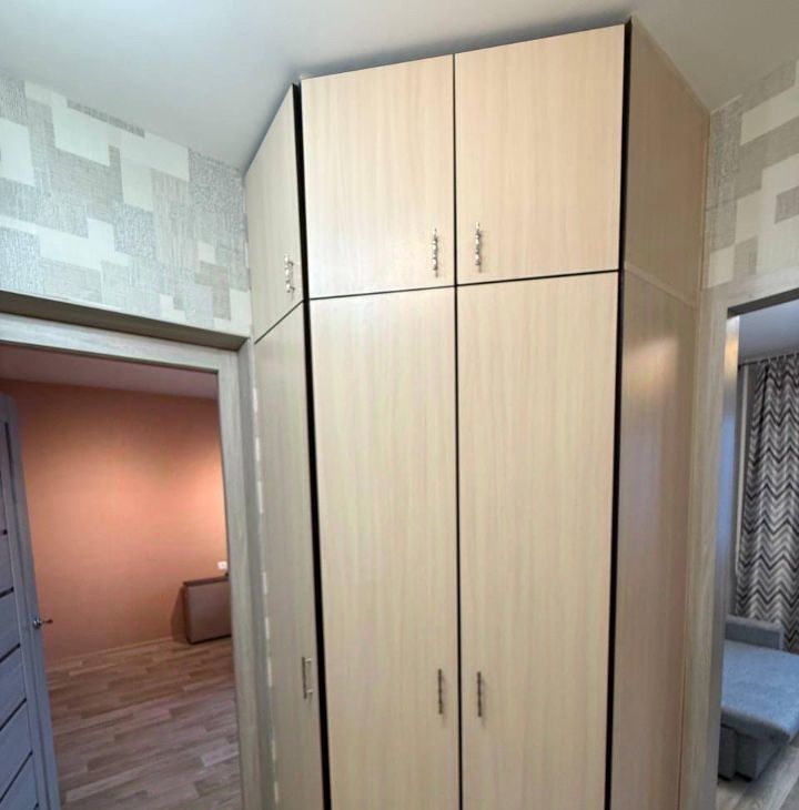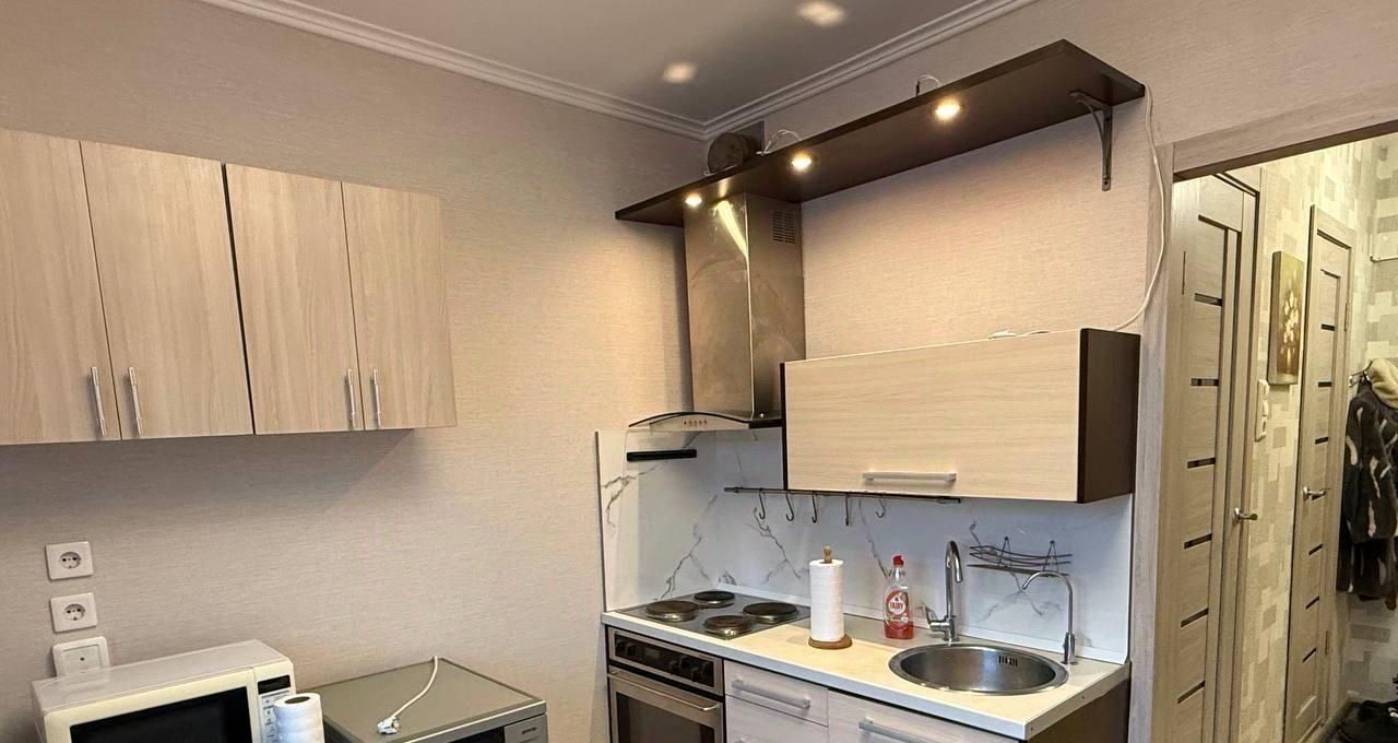 В комнате установлен вместительный шкаф и удобный диван. Санузел раздельный, выполнен в светлых тонах. Кухня оборудована современной мебелью и техникой.