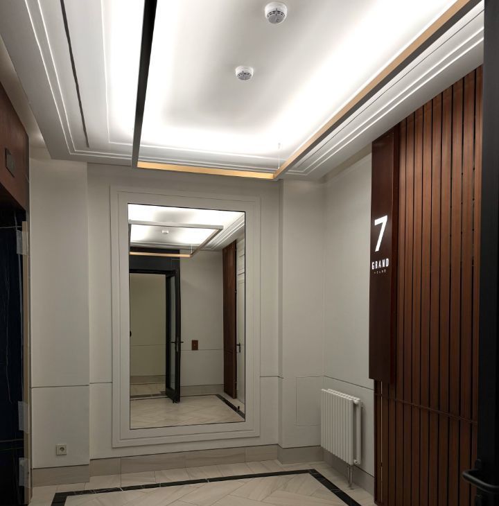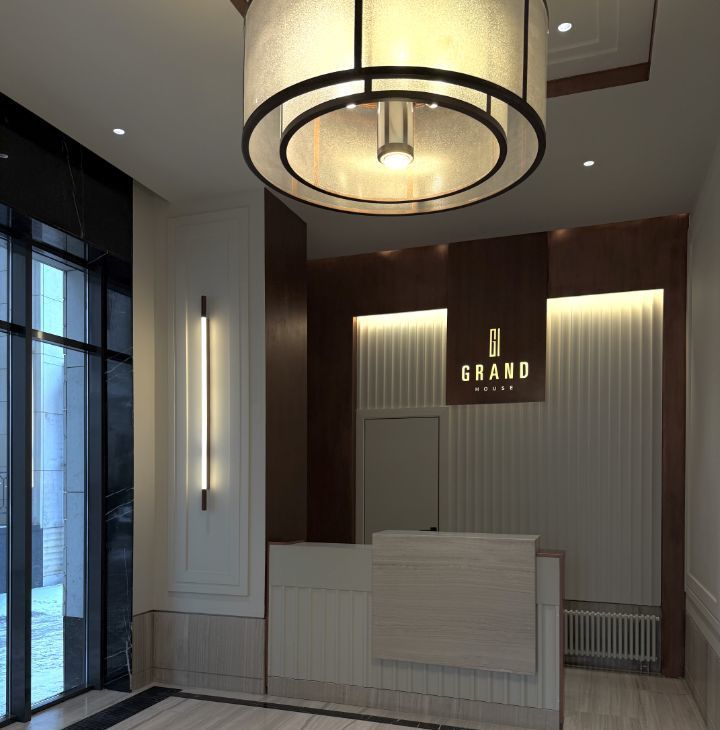 ЖК Grand House-клубный дом премиум класса. Закрытая охраняемая территория. В каждой секции дома дизайнерские лобби с потолками более 4х метров. Центральный ресепшен с отдельной переговорной комнатой, зоной для работы и встреч вне дома, спортивного зала с душевой.