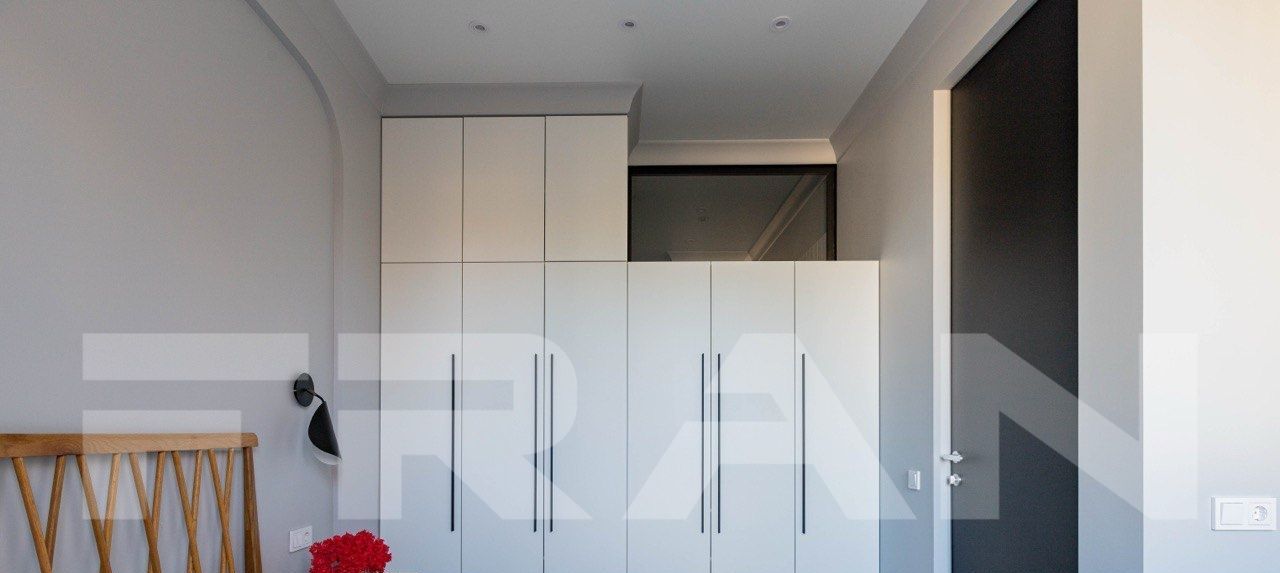 В гардеробной есть удобные зоны для хранения вещей (ближайшее время установят гардеробный гарнитур и шкаф в ванной).