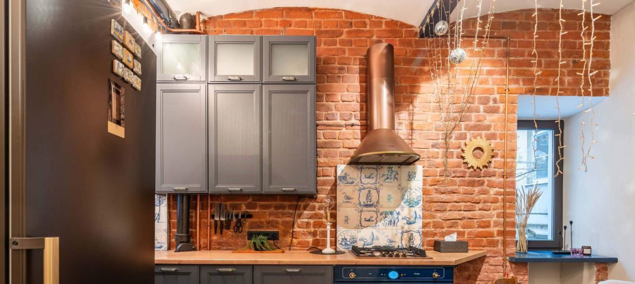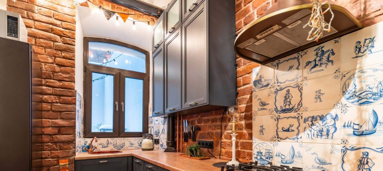 Дизайн квартиры выполнен в стиле Лофт. Здесь тихо и по-особому уютно. Окна кухни выходят на небольшой дворик для летних посиделок на свежем воздухе. Здесь можно посадить цветы, устроить барбекю или собрать гостей на дружескую вечеринку. Во дворе проведено электричество и вода.