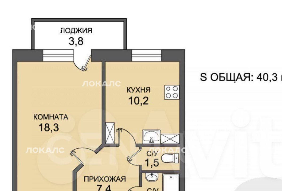1-комнатная квартира: Санкт-Петербург, Моравский переулок, 3к2 (40 м²)