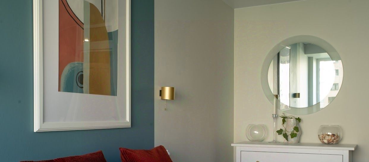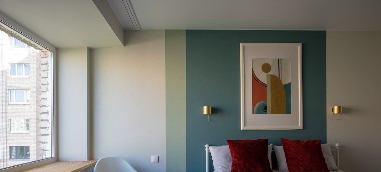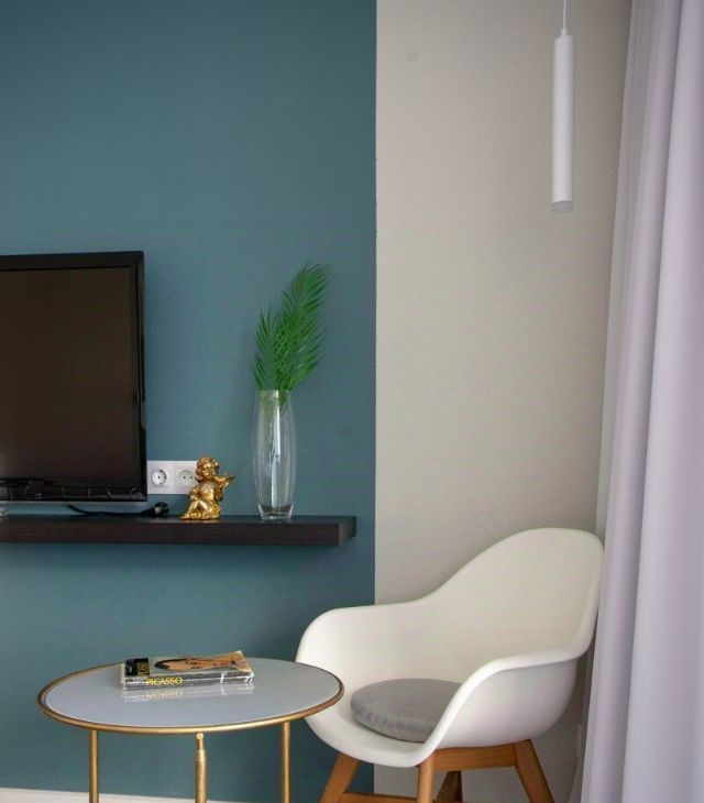 Эффектное дизайнерский ремонт, гармоничная цветовая гамма в оформлении квартиры.