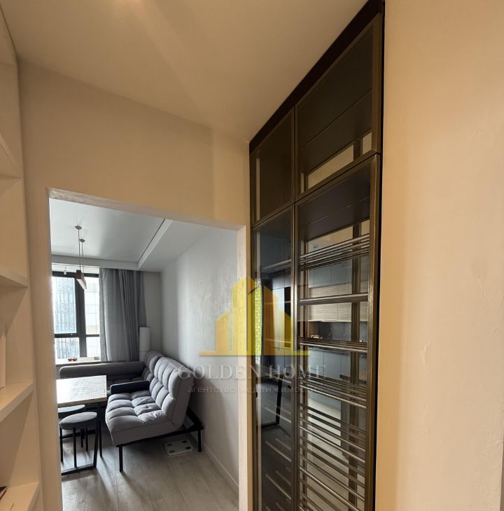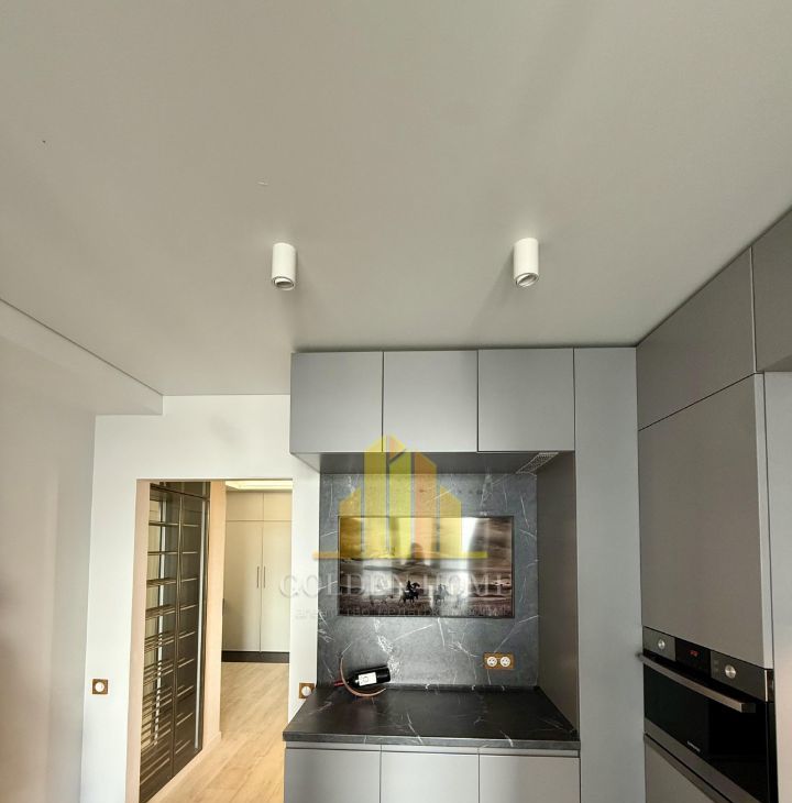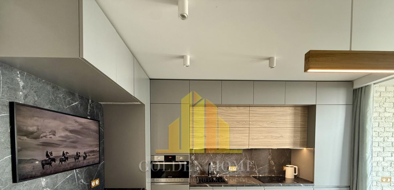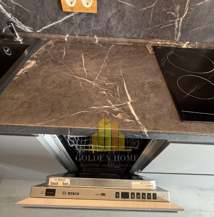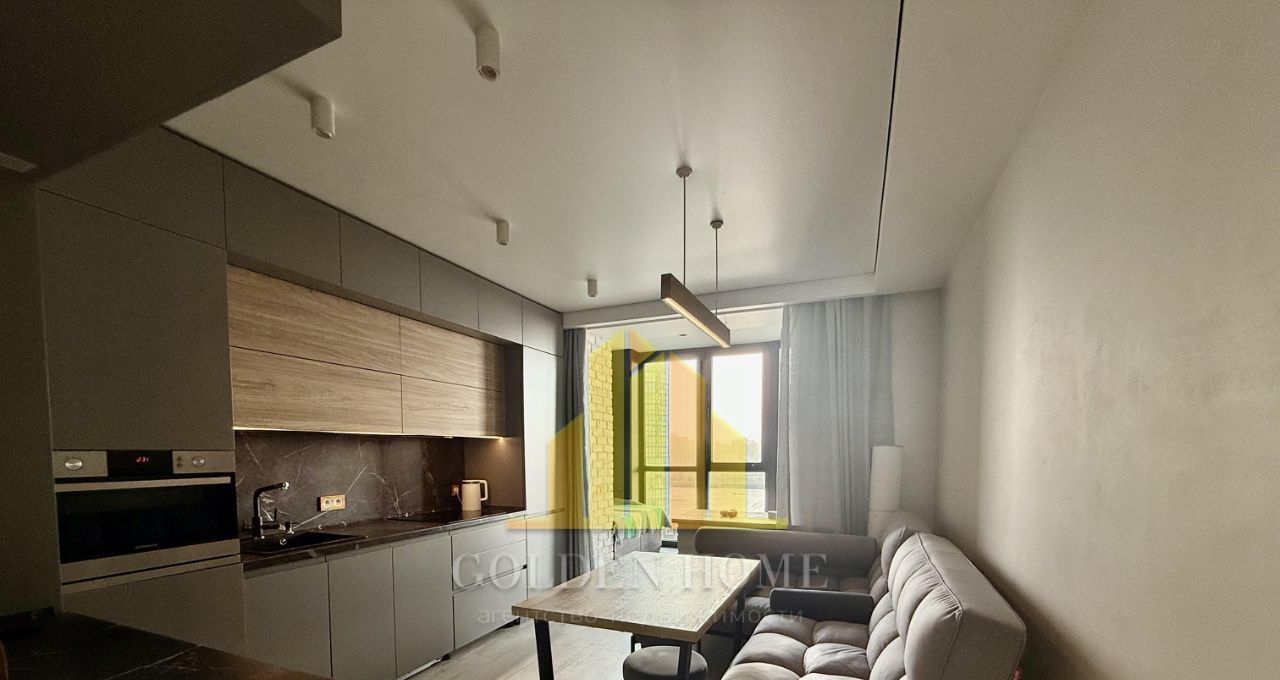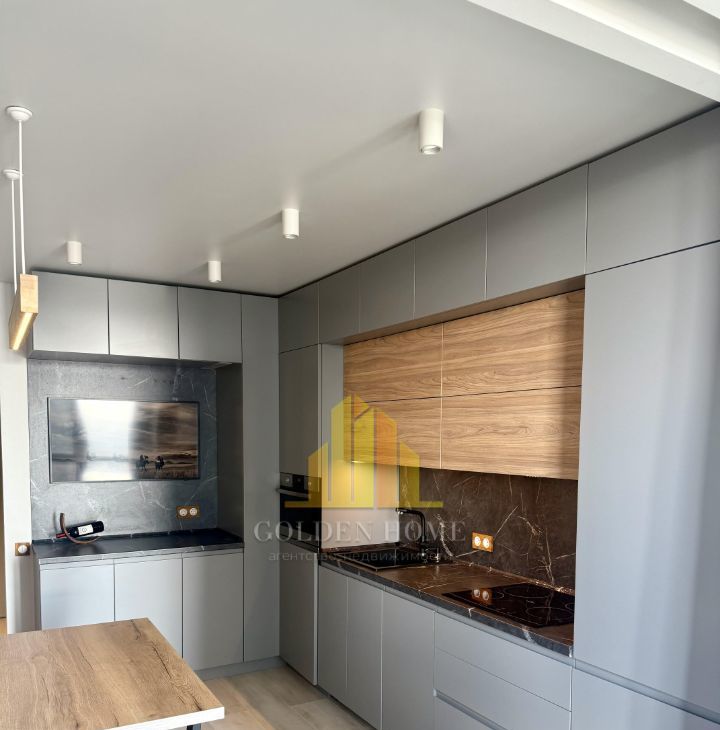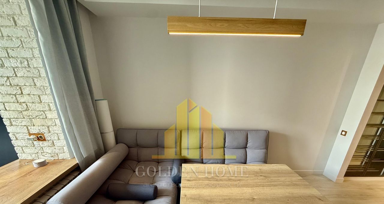 Кухня-гостиная: Уютное пространство с раскладным диваном, ТВ 43". Техника: холодильник, посудомоечная машина, встроенные микроволновка и духовой шкаф. Тёплый пол, питьевой фильтр на кухне.