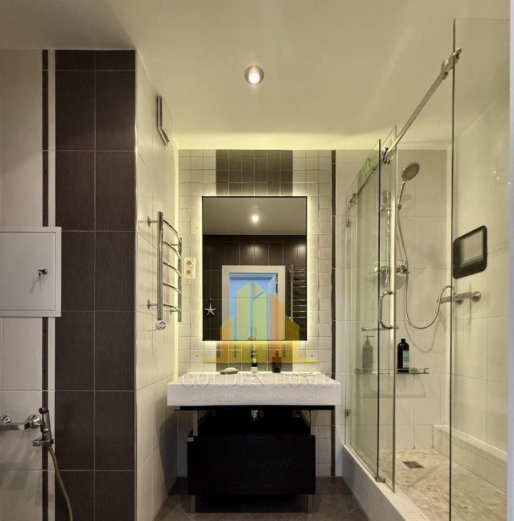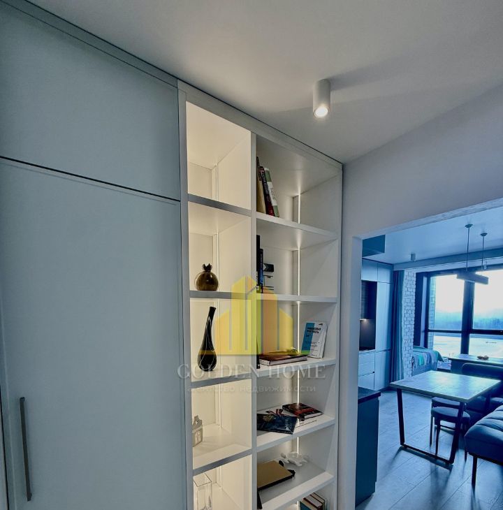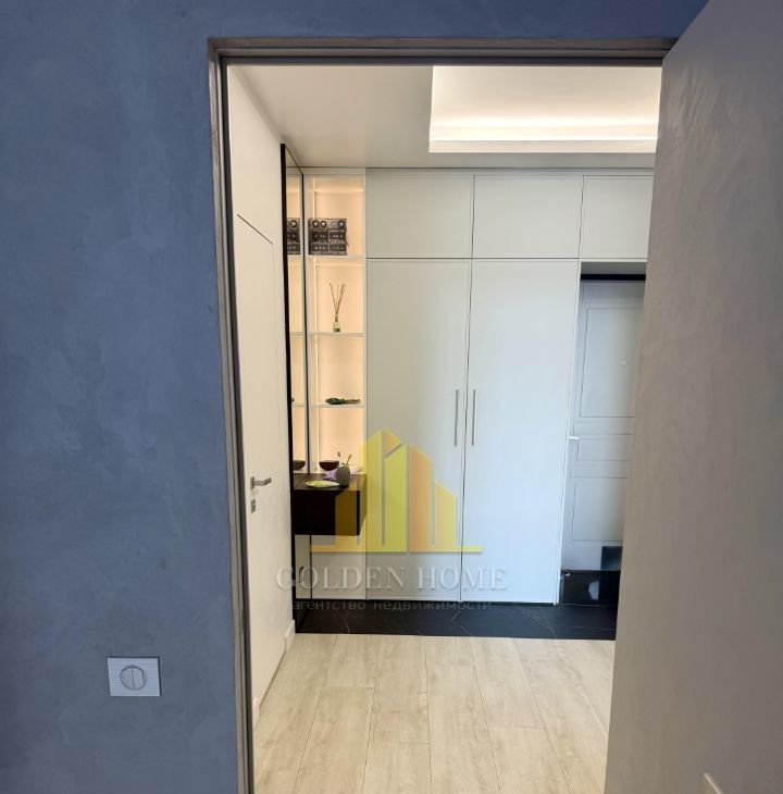 Прихожая: Множество мест для хранения (системы вдоль стен), винный шкаф, мощный кондиционер, тёплый пол.