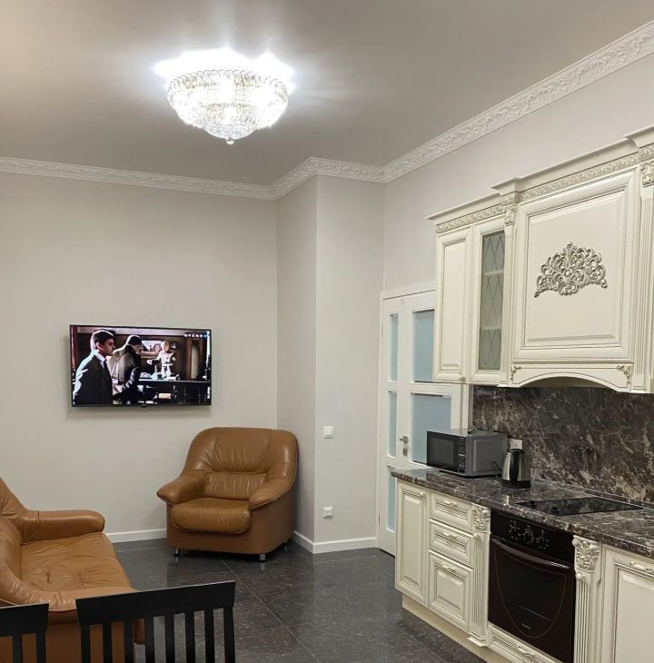 - холодильник, духовой шкаф, плита, вытяжка, микроволновая печь, посудомоечная машина, 2 смарт тв;