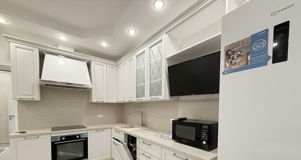 Район отличается развитой инфраструктурой— всё необходимое в пешей доступности.Квартира полностью готова к заселению:только что завершён ремонт, вся мебель и техника — новые.