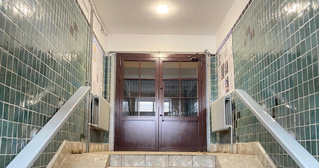 Встроенный шкаф в прихожей, двойная входная дверь.