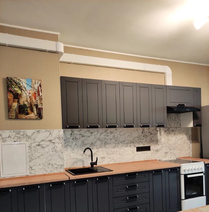 В просторной кухне-гостиной 15 кв.м имеется вся кухонная посуда, необходимая для приготовления, все расположено рационально "под рукой", в обеденной зоне можно расположиться для работы и отдыха.