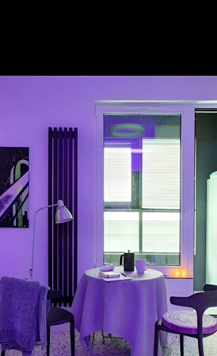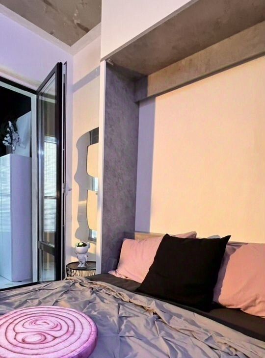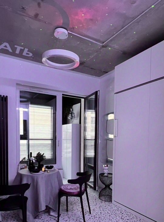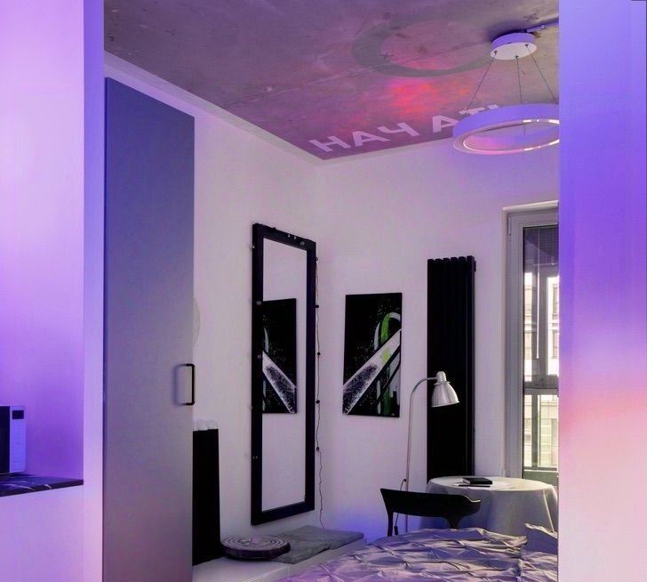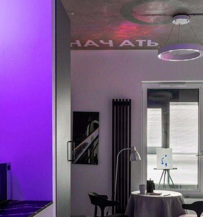 Сенсорное пространство, где будут задействованы все органы чувств — точно не оставит никого равнодушным. Голый бетон на потолке и белые стены засветятся разными оттенками от rgb-терапии, атмосферные проекции и сценарии управления освещением — создают пространство для творчества. Чистый холст — неизменный аксессуар к моноцветному белью, чтобы оставить свой след в жизни этого дома.