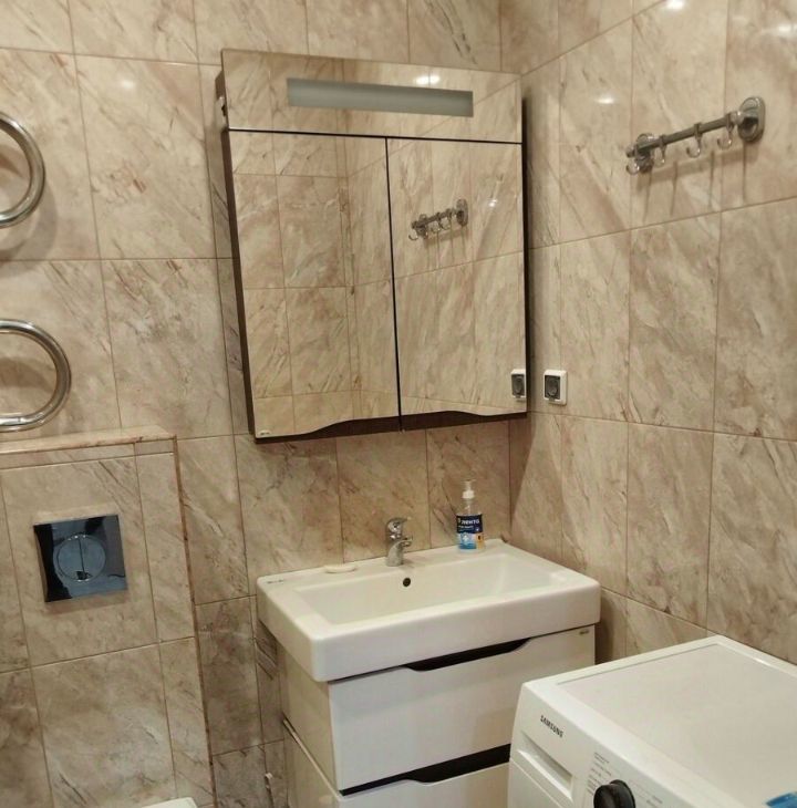 Общая площадь-39.5 кв.м. Высота потолка-2.75м. В квартире есть все необходимое: кухонный гарнитур, холодильник, стиральная машина, диван-кровать, телевизор, письменный стол, душевая кабина, гардеробная, интернет.