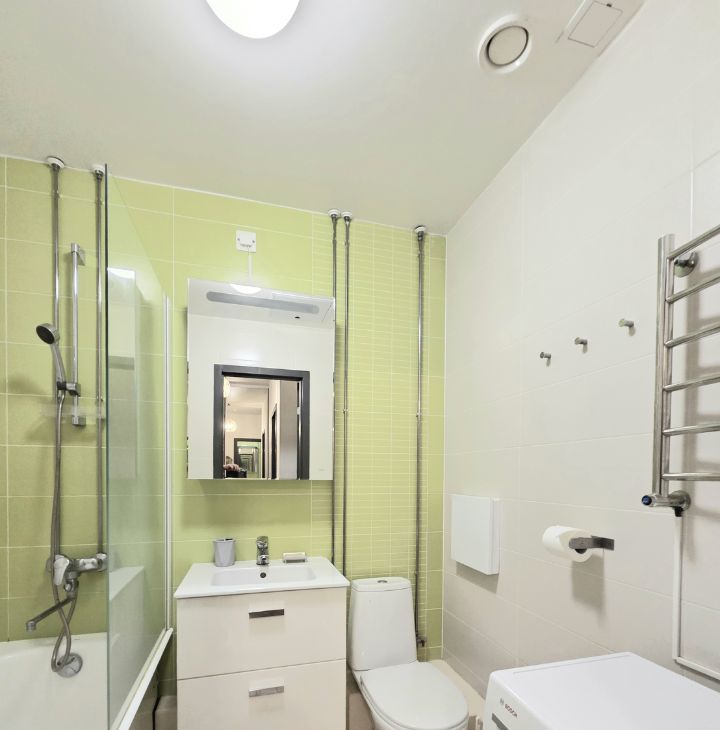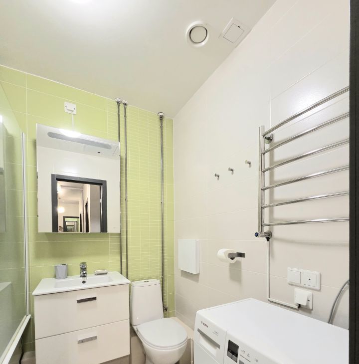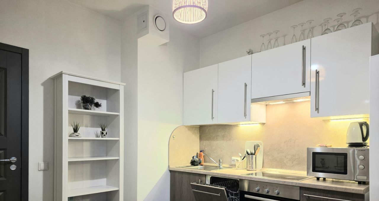 Территория ЖК огорожена, имеется круглосуточное видеонаблюдение и охрана. В доме также имеется подземный паркинг. В квартире выполнен современный ремонт в стиле финский минимализм. Есть все необходимое для проживания. В комнате кровать со спальным местом 160 см,, прикроватная тумба, рабочий стол, шкаф-купе. На кухне имеется встроенная техника Bosch включая стиральную и посудомоечную машины. Также имеется мелкая бытовая техника: чайник, микроволновая печь, утюг, пылесос. В с/у расположена чугунная ванна. В коридоре есть также шкаф-купе. Имеется лоджия.