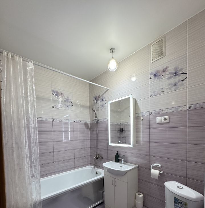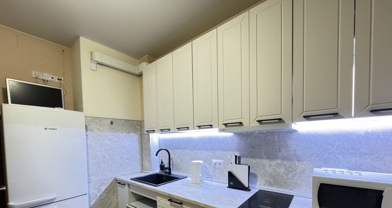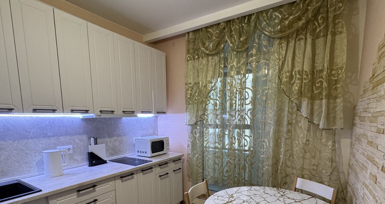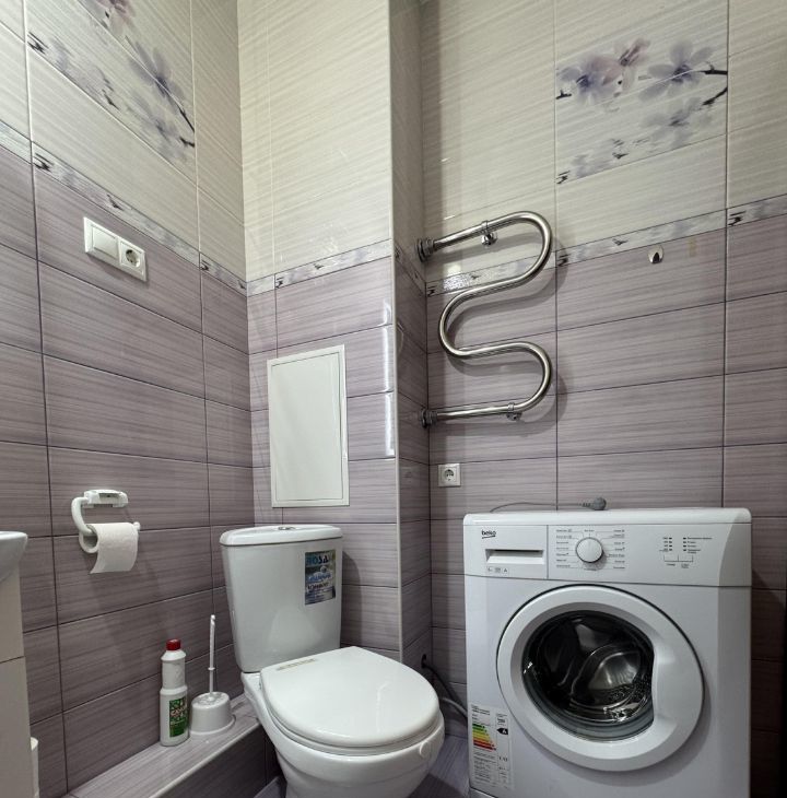 Квартира с евроремонтом, полностью готова к проживанию. Уютная жилая площадь 18 кв. м, кухня 8 кв. м оборудована всей необходимой техникой: холодильник, посудомоечная машина, стиральная машина и телевизор. В квартире есть вся нужная мебель как в комнате, так и на кухне. Санузел совмещенный, оборудован ванной. Высота потолков составляет 2.7 метра, окна выходят во двор, поэтому в квартире всегда тихо и спокойно.